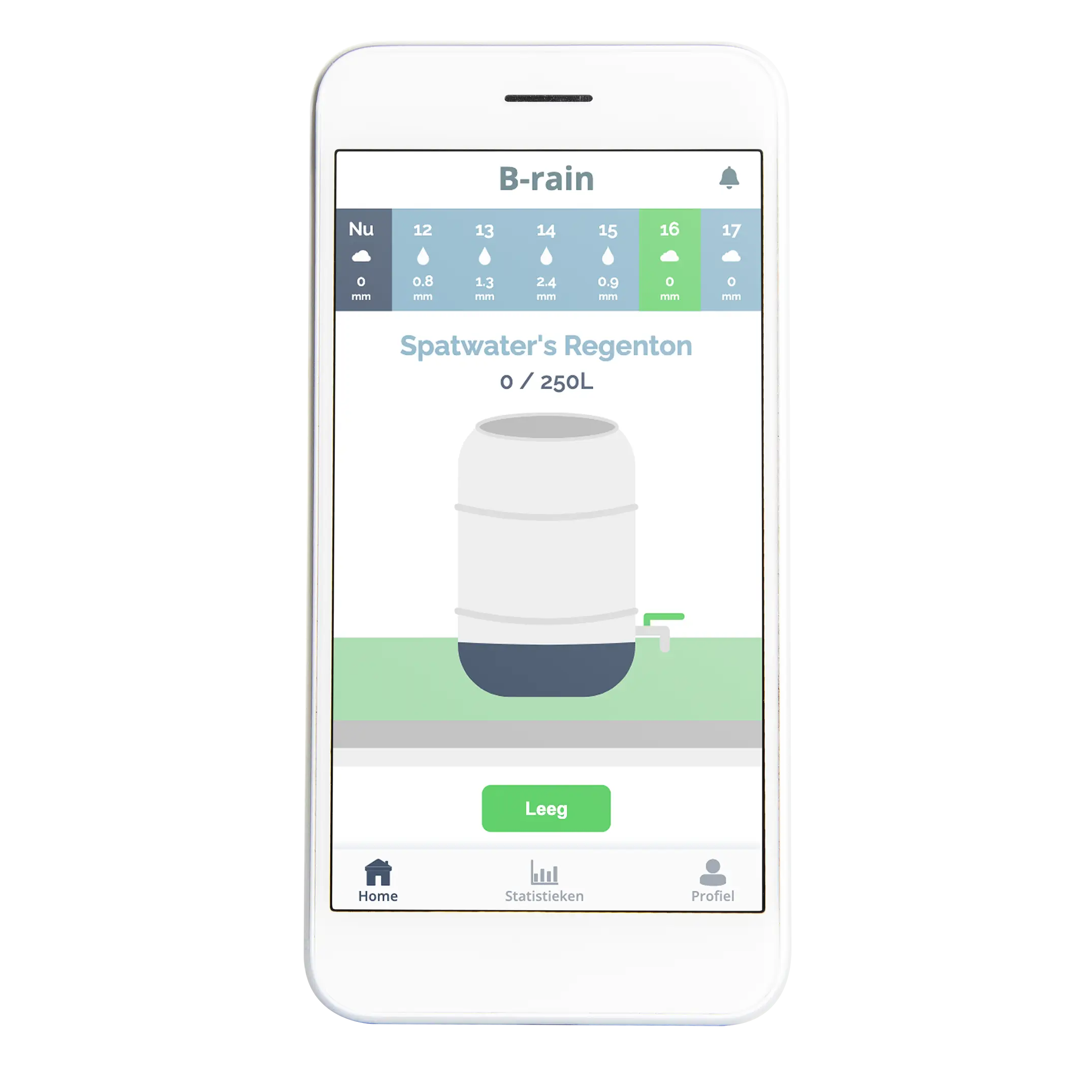 For the start-up Spatwater, my teammates and I created a mobile prototype that allows users to see when the rainwater buffer is full, when it needs to be emptied, and when it hasn't rained for a long time.